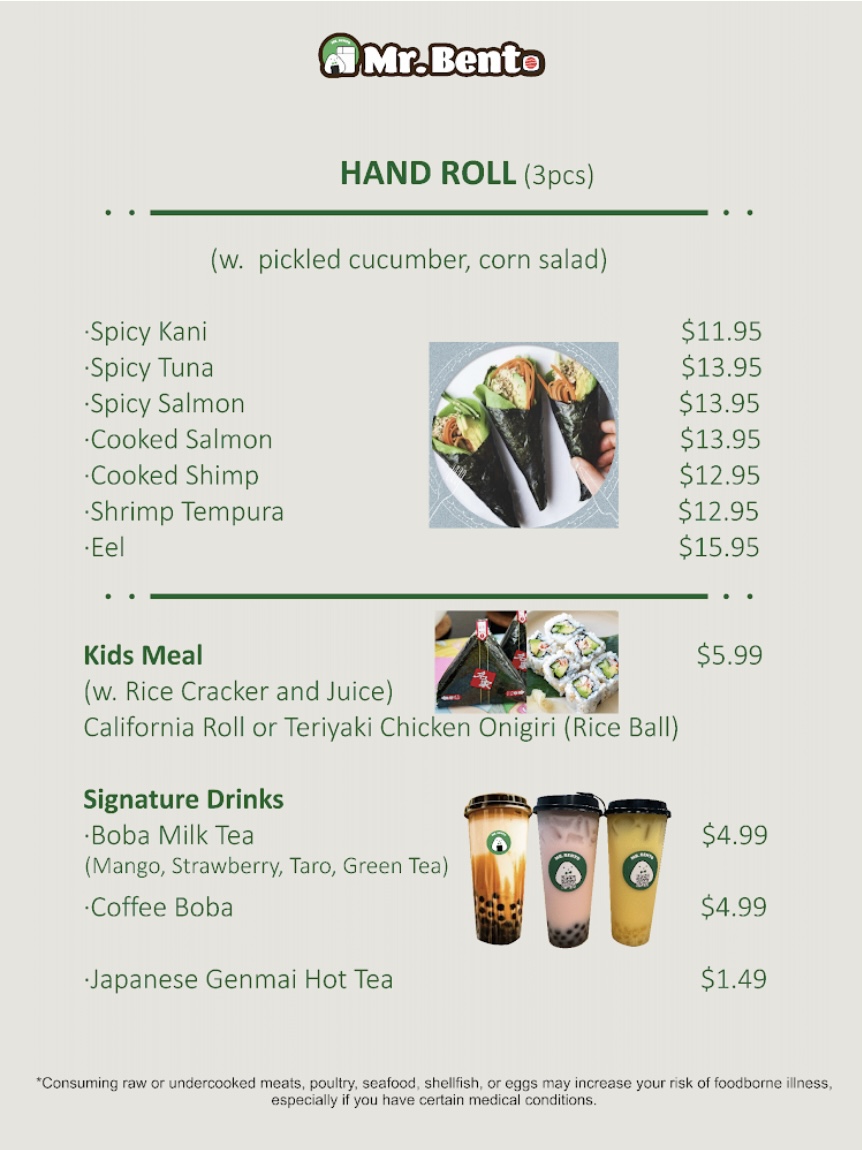 Complement your meal with refreshing beverages, including sodas and unique promotions like free gacha tokens, making your dining experience even more enjoyable. With friendly staff and vibrant ambiance, Mr. Bento is perfect for casual hangouts with friends or family.